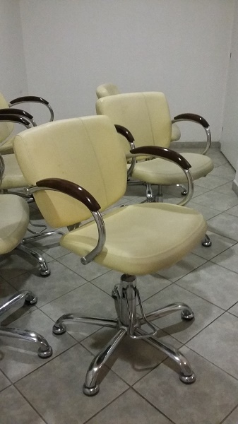 -tři kadeřnicka křesla italské značky “beauty star” za celkovou cenu 11.400 Kč /křesla jsou v perfektnim stavu, jsou nově potažena stříbrnou koženkou/ -kadeřnický mycí box italské značky “beauty star” za 8.900 Kč /box je v perfektním stavu, sedák je potaž